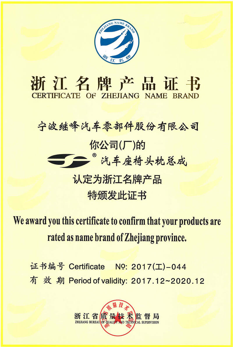 公司產(chǎn)品榮獲“浙江名牌產(chǎn)品”榮譽稱號;